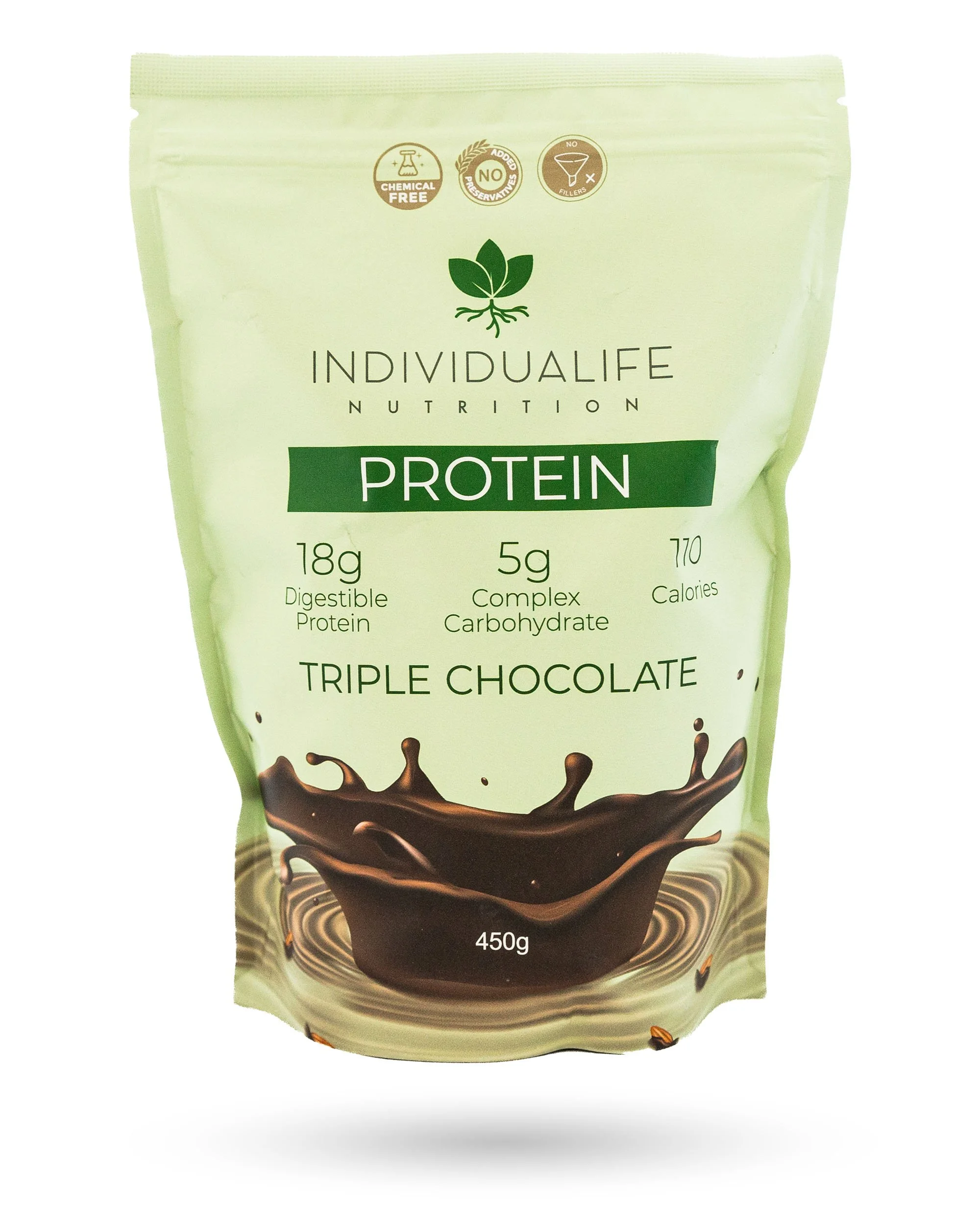 Packed with 100% easily digestible proteins, our Triple Chocolate protein powder offers a rich, indulgent flavor while providing complete amino acids and essential nutrients for total body wellness.